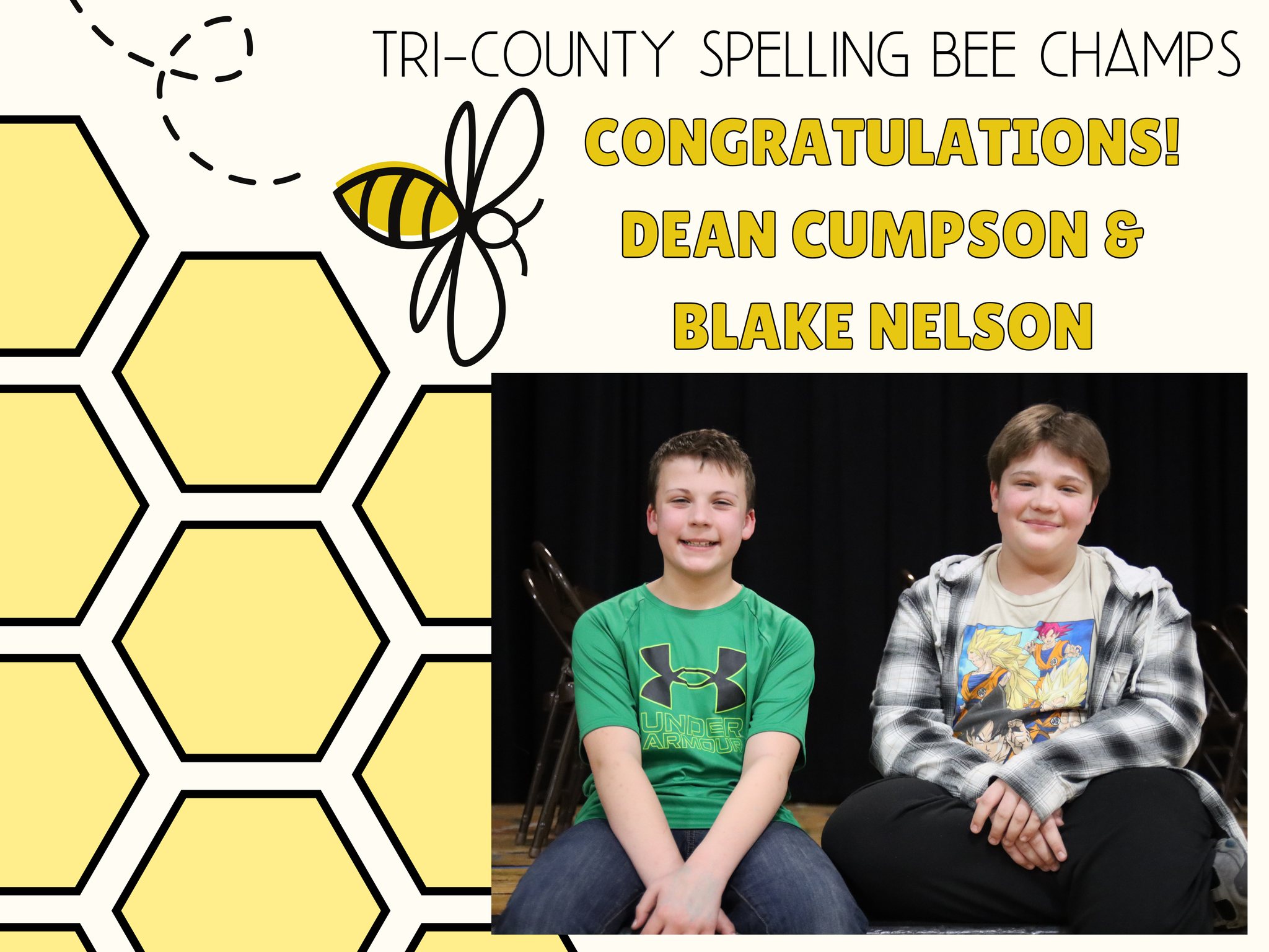 After 12 intense rounds of competition, Tri-County School crowned a new Spelling Bee champion. Eighth grader Dean Cumpson earned first place, with sixth grader Blake Nelson finishing as the runner-up.